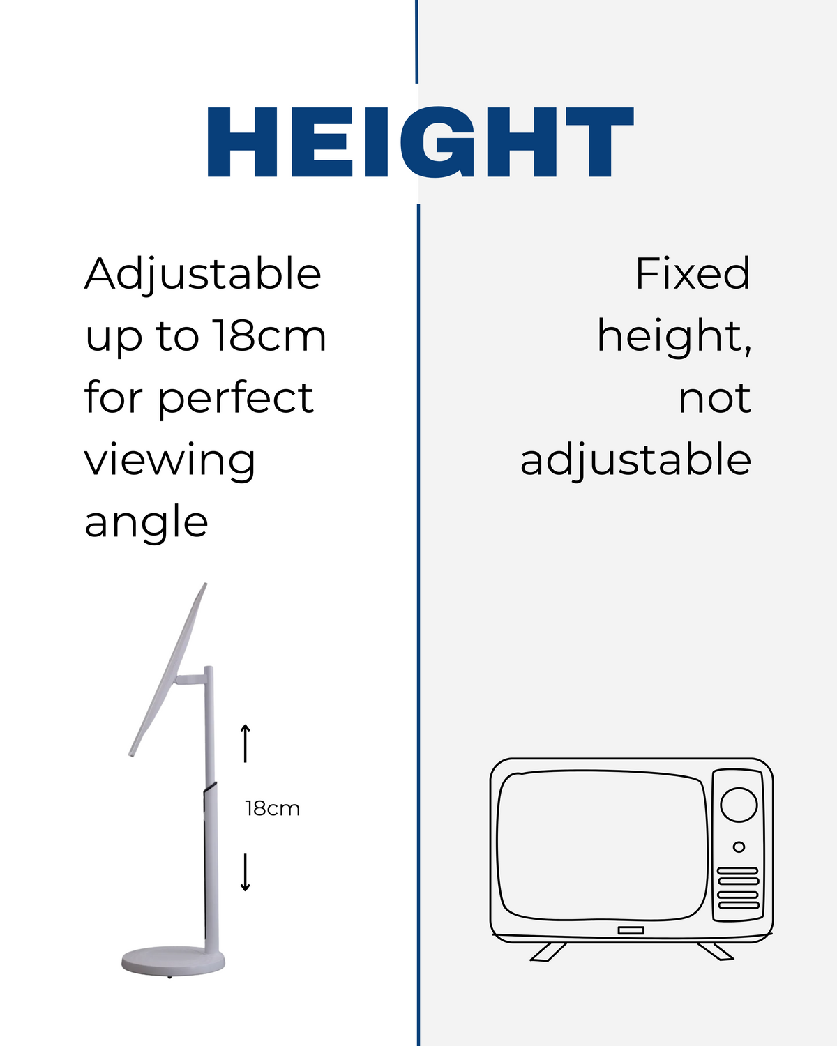 You can rotate, tilt, or adjust SIDEK iTV to fit whatever you're doing. Its multiple options include up to 180° rotation, 45° tilt, and 18 cm height adjustments.